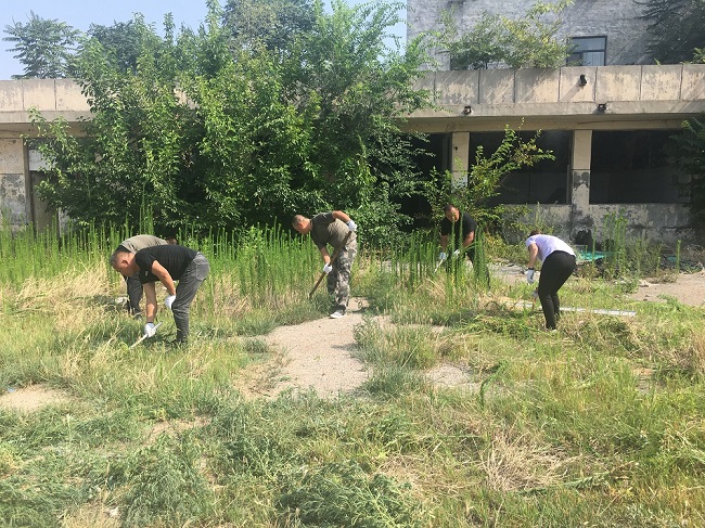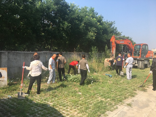 因為交通賓館院內(nèi)是一個廢棄的停車場,所以需要清理的垃圾較多?;顒蝇F(xiàn)場,參加義務勞動的志愿者們拿著掃帚、耙子、鐵锨等工具在院內(nèi)開始清理工作,雖然天氣炎熱,但每一位志愿者都不怕臟、不怕累,擼起袖子加油干,認真對停車場院內(nèi)生活垃圾、衛(wèi)生死角、雜草及白色污染等進行了整治清理,并聯(lián)系了清運汽車,對院內(nèi)的亂堆的雜物、建筑垃圾進行了清運。